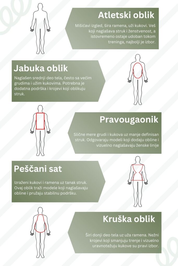 - Različite građe tela zahtevaju različite krojeve veša koji će istaknuti ono najbolje i pružiti pravu podršku.